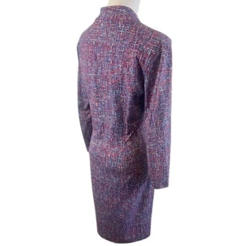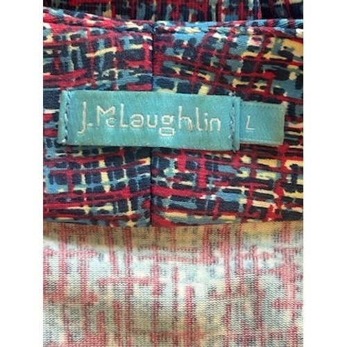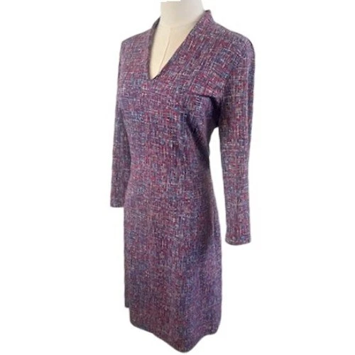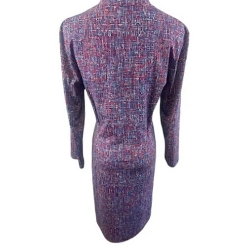 Envision a sophisticated statement piece that effortlessly enhances your wardrobe! This striking J.McLaughlin knit dress offers a chic and comfortable option for various occasions. The dress features a flattering V-neckline and elegant 3/4 sleeves, providing a classic and timeless silhouette. The all-over abstract pattern in shades of red and blue adds a touch of visual interest, making it a standout piece. The soft and stretchy knit fabric ensures all-day comfort and easy wear. The midi length is perfect for both professional and social settings. Elevate your office attire with this polished dress, or make a stylish statement at your next brunch or daytime event.