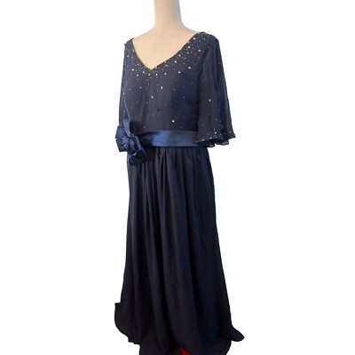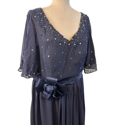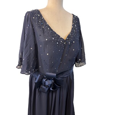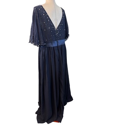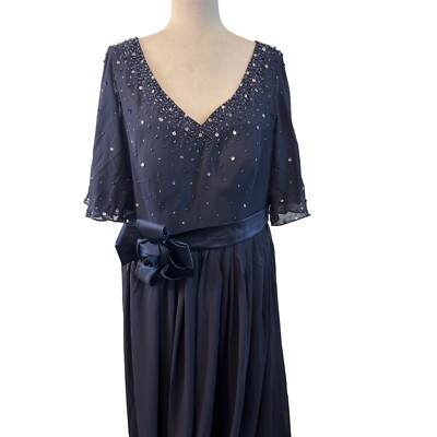 Keywords: formal dress, evening gown, plus size dress, beaded dress, navy dress, wedding guest dress, special occasion dress, prom dress, mother of the bride dress, v-neck dress, chiffon dress, gown, JenJenHouse, size 18W