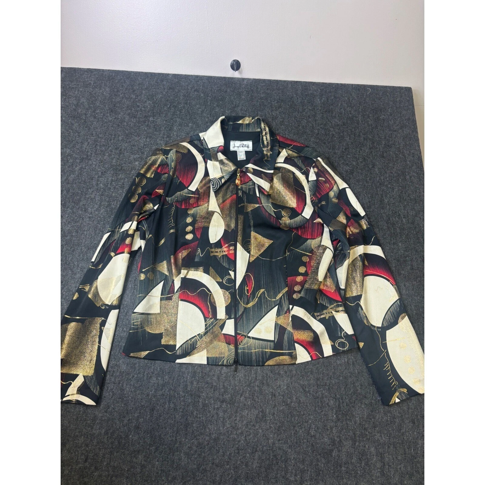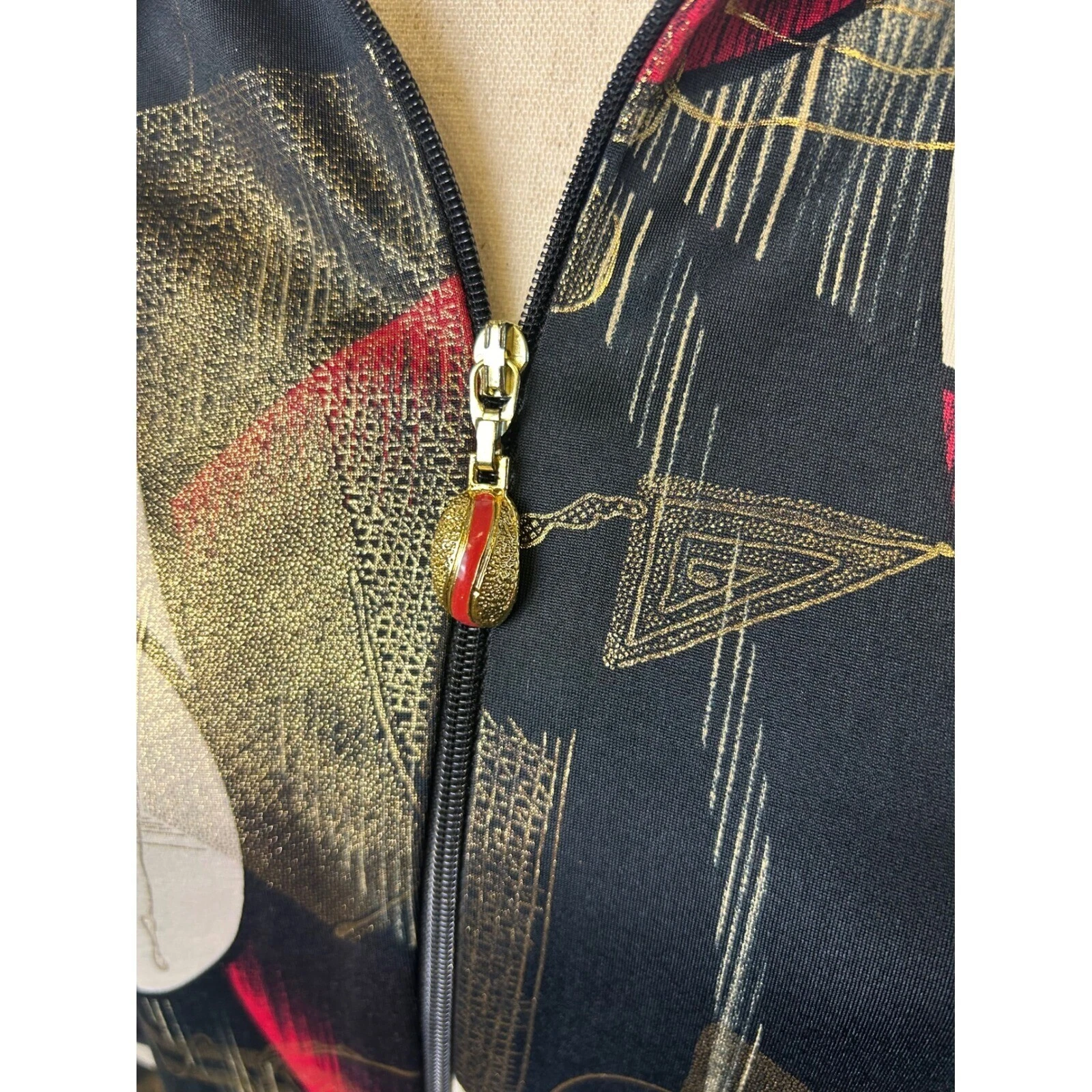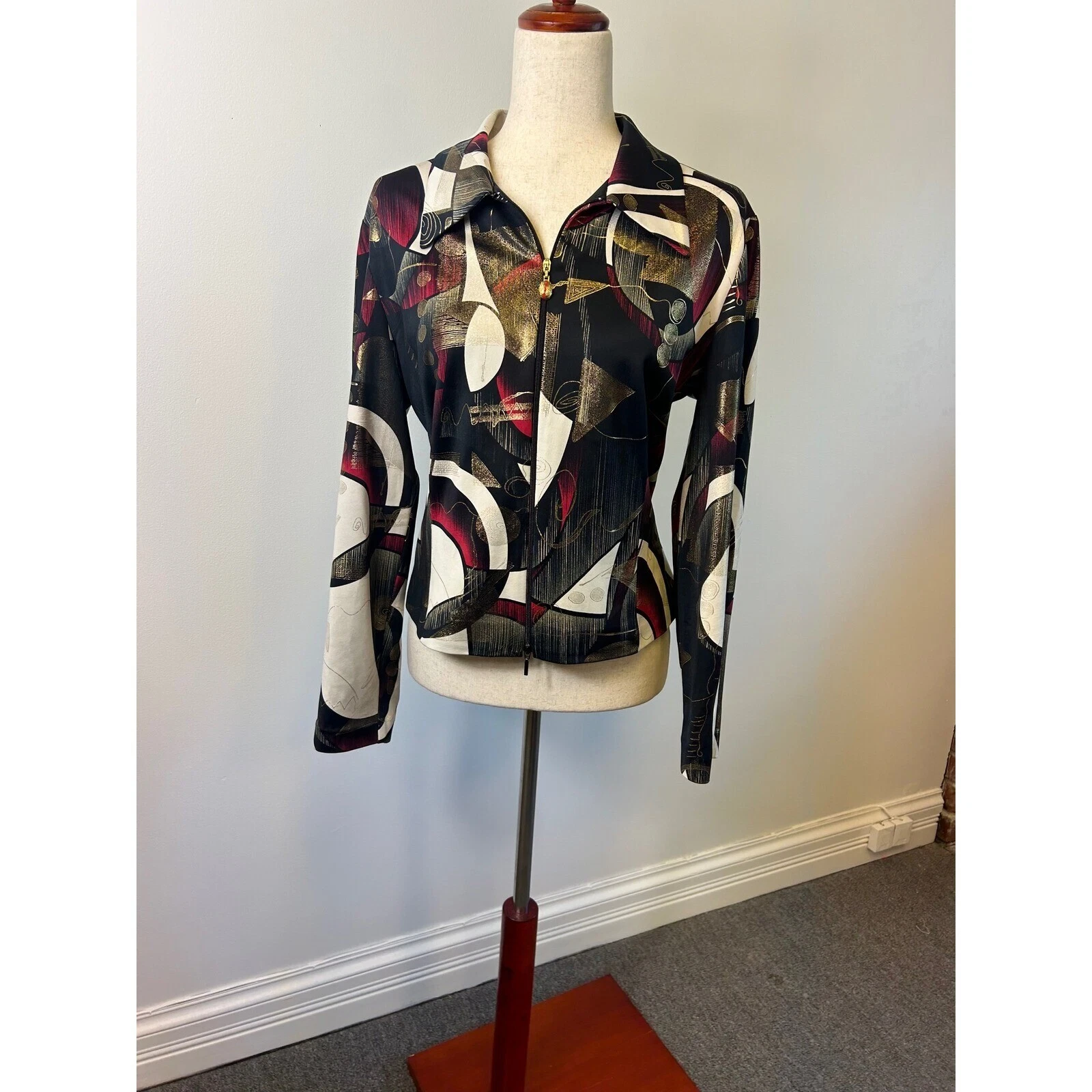 Joseph Ribkhofff Geometric Zip Jacket Black Red Metalliic Top Women’s Size 14