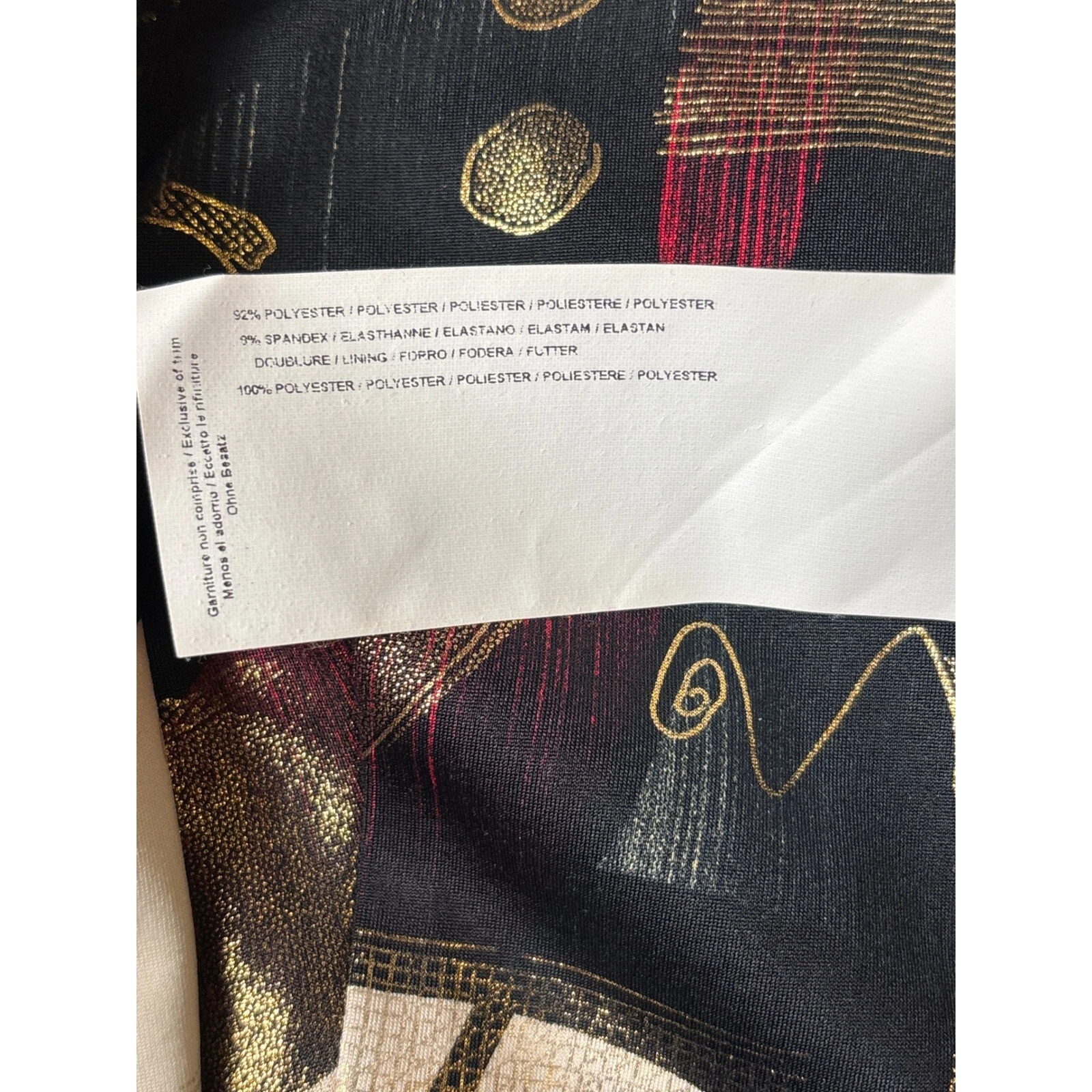 This Is a new without tags fantastic zip front jacket top by Joseph Ribkoff in red, black, cream and metallic gold. Measures 21″ in length, 20″ bust (pit to pit laid flat), with a 23″ sleeve length.