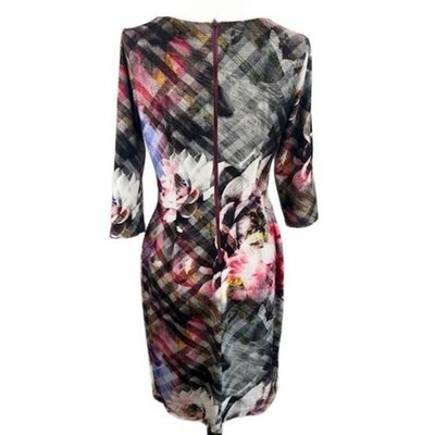 Keywords: Joseph Ribkoff, sheath dress, floral dress, plaid dress, 3/4 sleeve dress, knee length dress, multicolor dress, womens dress, career dress, cocktail dress, party dress, elegant dress