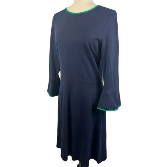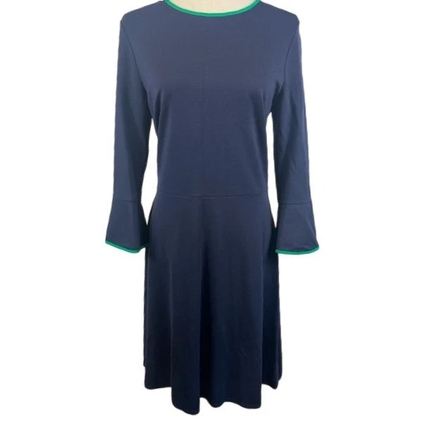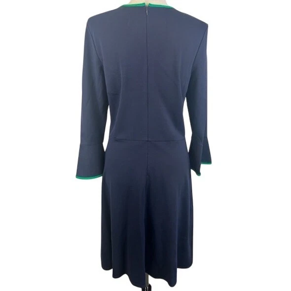 Jude Connally Women’s Navy Blue Green Dress Long Sleeve Fit & Flare Size Medium