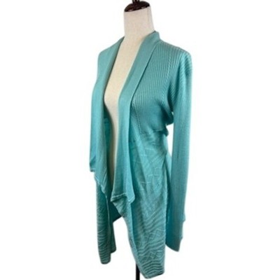 Keywords: Julie Brown, Cardigan, Open Front, Ribbed Knit, Sweater, Draped Cardigan, Aqua Cardigan, Casual Cardigan, Layering Cardigan, Bohemian Style, Spring Cardigan, Summer Cardigan, Knit Cardigan, Medium/Large, NYC