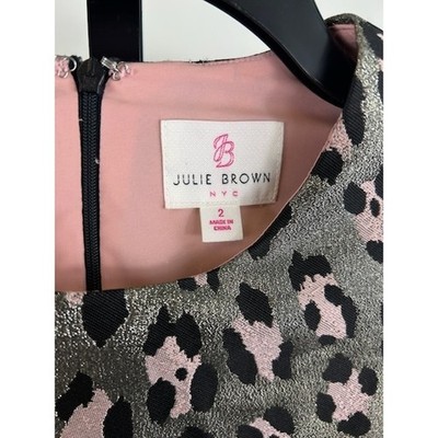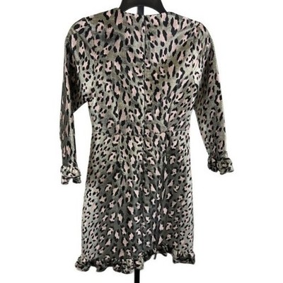 Keywords: Julie Brown NYC, Leopard Print Dress, Ruffle Trim, Long Sleeve, Animal Print, Party Dress, Cocktail Dress, Casual Dress, Womens Dress, Size 2, Gray Dress, Pink Dress