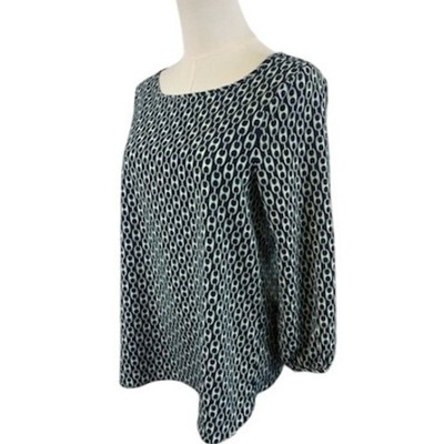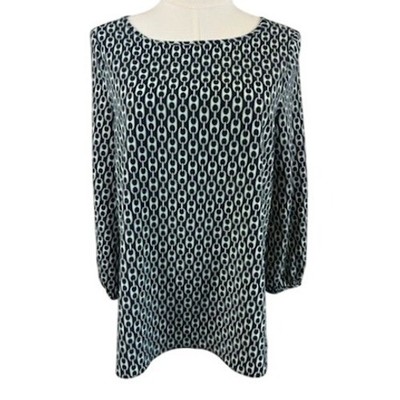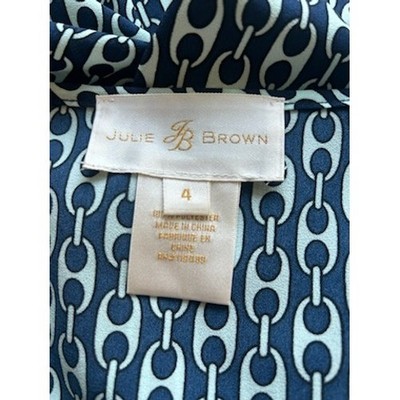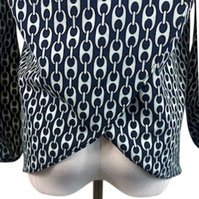 Keywords: Julie Brown, blouse, top, chain print, long sleeve, size 4, womens, blue, dressy, casual, work, office, stylish, designer