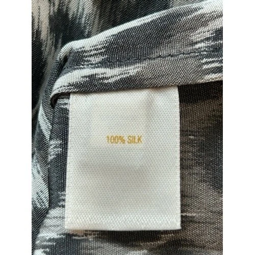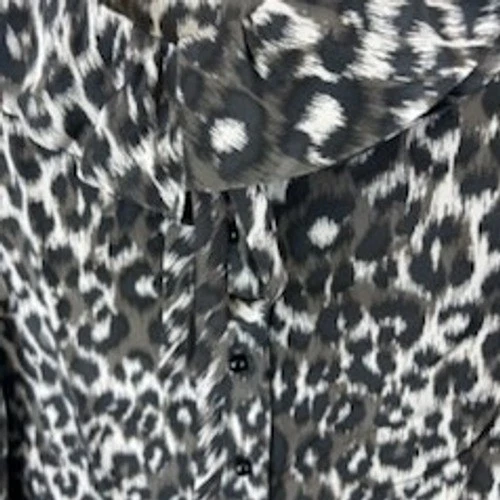 Excellent condition! Elegant button-down blouse in a sophisticated gray and white leopard print. This blouse features a charming ruffled collar, adding a touch of feminine flair to the wild pattern. The long sleeves and delicate button closure offer a polished and refined look. Made from luxurious silk, it drapes beautifully and feels incredibly soft against the skin. Perfect for a business casual office environment, a stylish brunch date, or dressing up for an evening out.