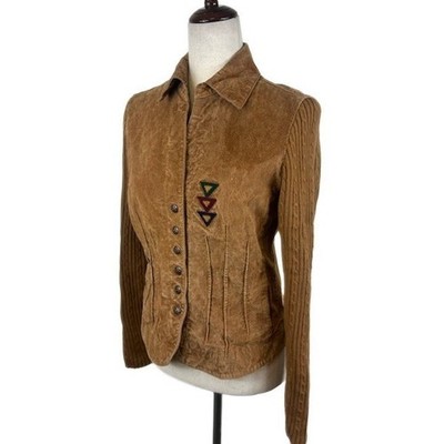 Keywords: y2k, Vintage, leather jacket, corduroy jacket, womens jacket, brown jacket, ribbed sleeve, button down, western jacket, embroidered jacket, suede jacket, small jacket, fitted jacket, boho style, festival fashion, stanz jacket