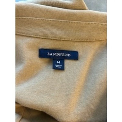 Keywords: Lands' End blazer, Women's blazer, Size 14 blazer, Tan blazer, Brown blazer, Black trim blazer, Career blazer, Business casual jacket, Long sleeve blazer, Classic blazer, Workwear, Office attire, Professional jacket