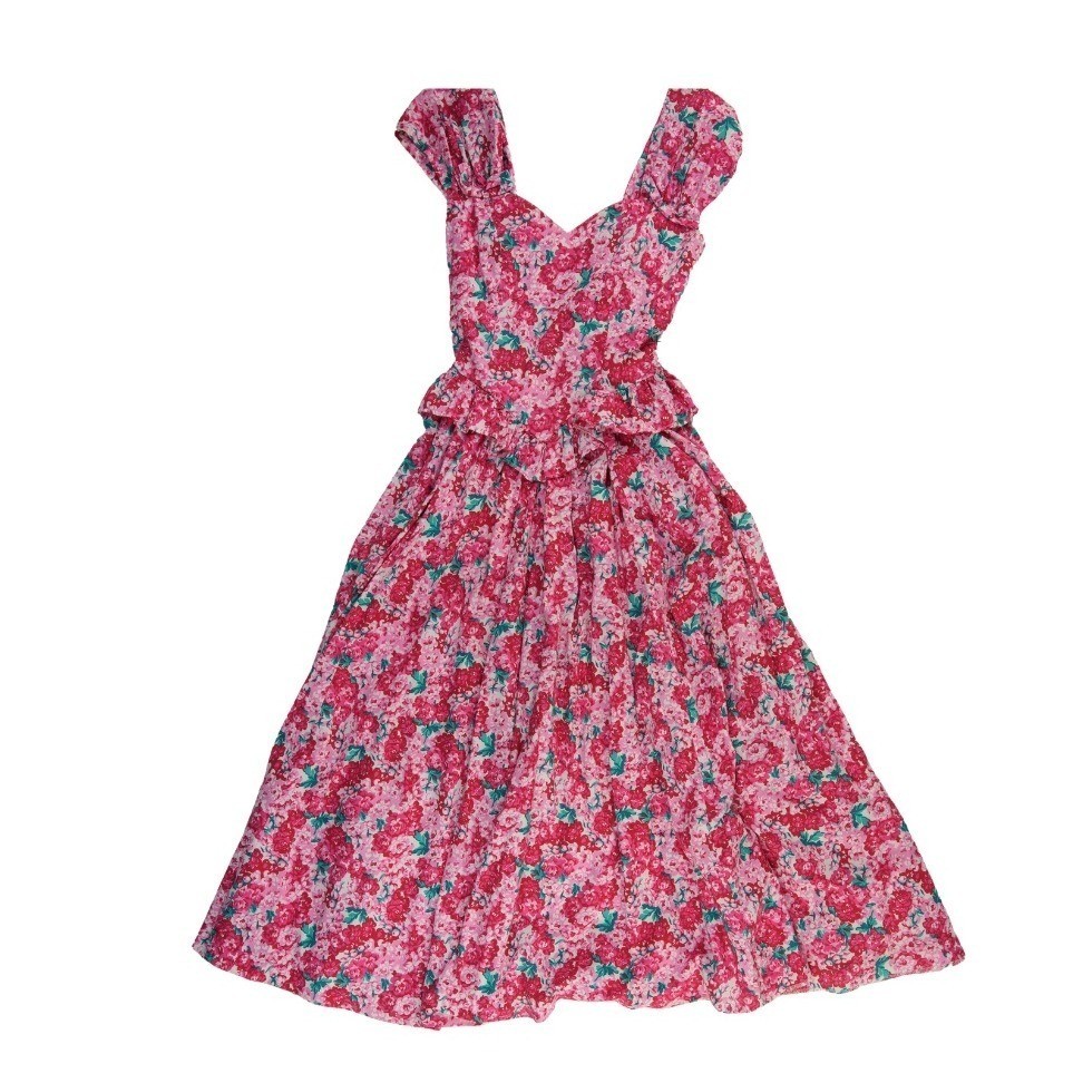 Keywords: Cottagecore, Regencycore, Victorian, Prairie, Romantic, Garden Party, Tea Length, Floral Print, 80s Vintage, 90s Vintage, British Heritage, Feminine, Summer Dress, Coquette, Shabby Chic