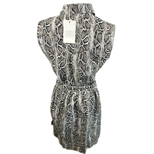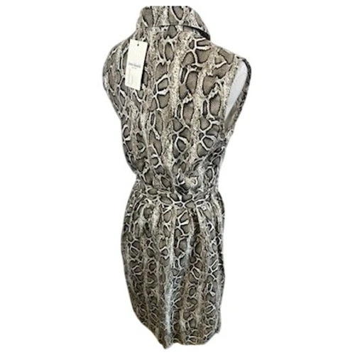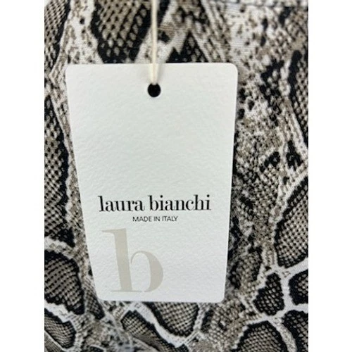 Command attention in this Laura Bianchi dress, a statement piece that exudes effortless chic. The striking python print brings a touch of the exotic, while the classic shirt dress silhouette offers timeless appeal. The sleeveless design keeps it breezy and perfect for warmer days, and the included belt cinches the waist for a flattering fit. Imagine yourself strolling through a sun-drenched piazza in Italy, or making a bold statement at a summer garden party. This dress is also perfect for a stylish brunch with friends.