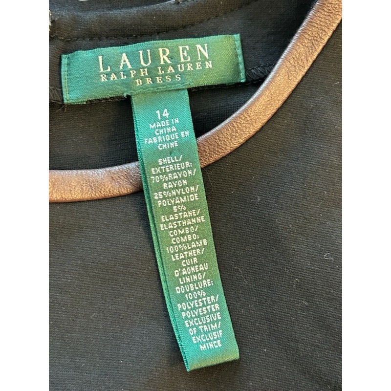 Lauren Ralph Lauren Black Dress Leather Trim Equestiran Career Casual Size 14