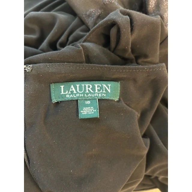 Chic black dress featuring a flattering ruched design, perfect for a sophisticated look. The dress boasts a round neckline, three-quarter length sleeves finished with elegant floral textured bell cuffs, and a knee-length hem. Its form-fitting silhouette is enhanced by the strategic ruching, which creates a slimming effect and adds visual interest. A concealed back zipper ensures a smooth, seamless fit. This dress is an excellent choice for cocktail parties, business events, or a formal dinner.