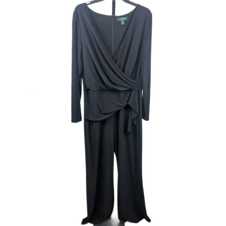 Be the first to review “Lauren Ralph Lauren Black Long Sleeve Wrap Front Jersey Jumpsuit Size 14”