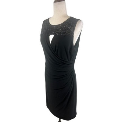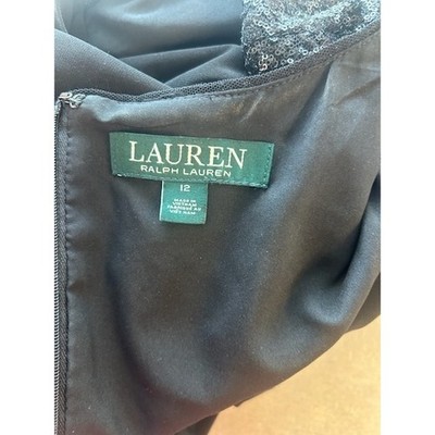 Keywords: Lauren Ralph Lauren dress, black sheath dress, sleeveless dress, sequin dress, cocktail dress, party dress, formal dress, evening dress, little black dress, LBD, size 12 dress, womens dress, ruched dress, surplice dress, special occasion dress