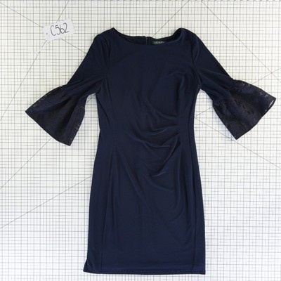 Lauren Ralph Lauren Dress Women’s Size 10 Navy Blue Lace Bell Sleeve Sheath