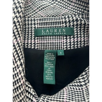 Lauren Ralph Lauren Plaid 100% Linen Lined Houndstooth Blazer Size 4