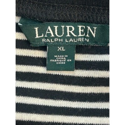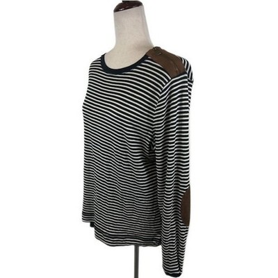 Keywords: Lauren Ralph Lauren, striped long sleeve top, elbow patches, long sleeve shirt, black and white striped, women's top, casual top, classic style, preppy, XL, extra large, striped shirt, long sleeve t-shirt, vintage inspired