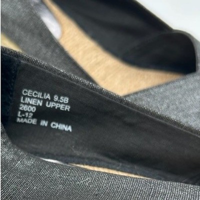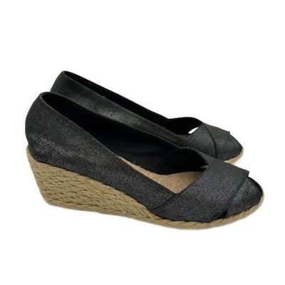 Keywords: espadrille, wedge heels, peep toe, dark gray shoes, linen shoes, summer shoes, vacation footwear, casual wedges, women's espadrilles, Ralph Lauren shoes, spring fashion, resort wear