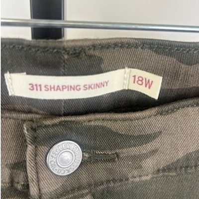 Keywords: Levi's, skinny jeans, camo print, utility style, comfortable, stretch denim, everyday wear, casual fashion, trendy, fashionable, bottoms, womenswear