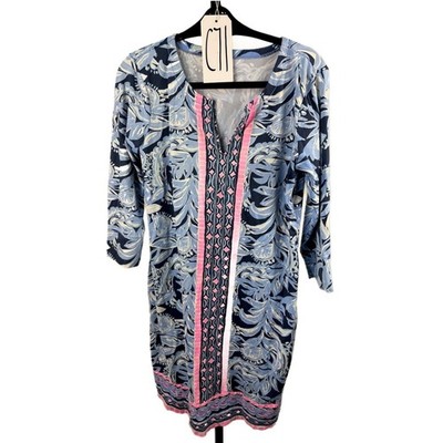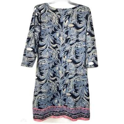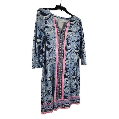 Lilly Pulitzer Dress Women’s Size Large Blue Pink Floral V Neck 3/4 Sleeve Shift