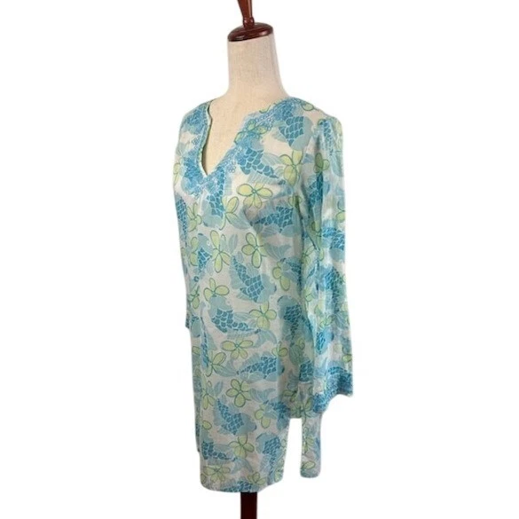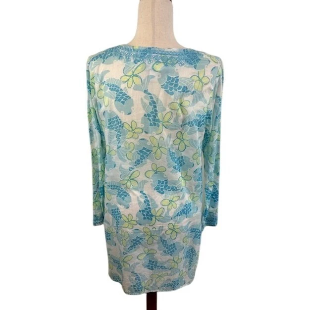 Keywords: Lilly Pulitzer, tunic top, cover up, floral print, fish print, blue, green, cotton, resort wear, beach cover up, vacation, cruise wear, bohemian, boho chic