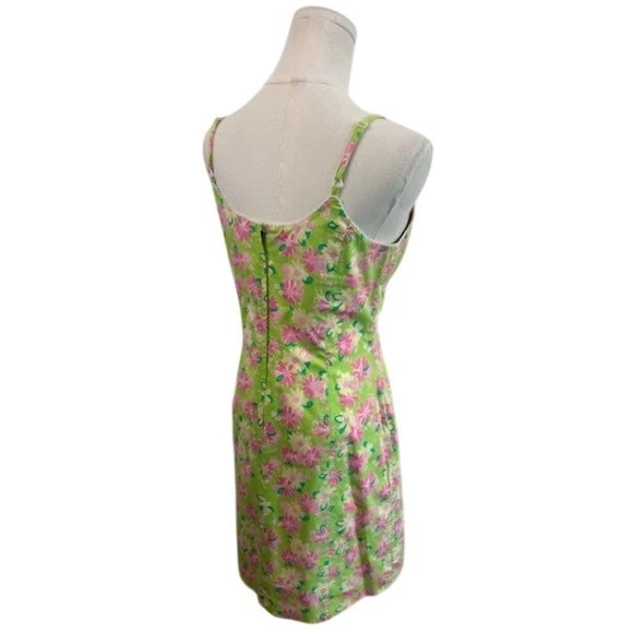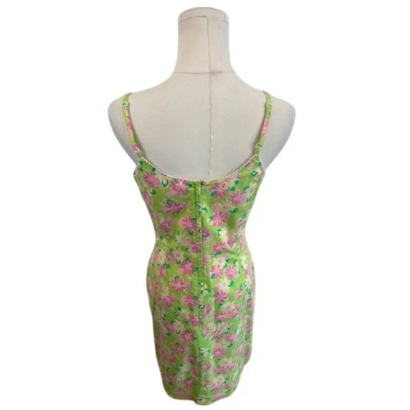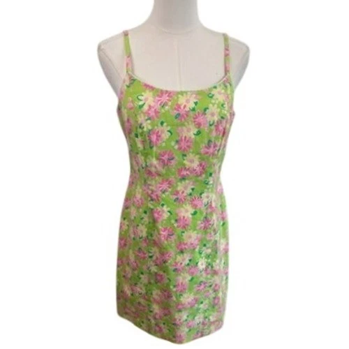 Radiant charm blooms in this Lilly Pulitzer dress, a vibrant statement piece that captures the essence of sunny days and garden parties. The lively floral print, bursting with pink and yellow blossoms against a fresh green backdrop, evokes a sense of playful elegance. Its classic mini silhouette and delicate straps create a flattering, feminine shape, perfect for twirling through summer afternoons. Imagine yourself wearing this dress to a casual brunch with friends, a romantic picnic in the park, or a festive outdoor celebration.