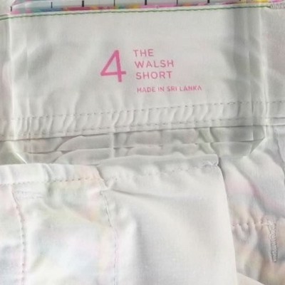 Lilly Pulitzer Walsh shorts feature a vibrant tropical floral print in a multicolor palette of pink, orange, yellow, and blue. Crafted from soft 100% cotton, these shorts offer a classic mid-rise fit with a zip fly and button closure. Functional details include front slant pockets and back welt pockets, making them a perfect choice for beach days, vacations, or casual summer outings.