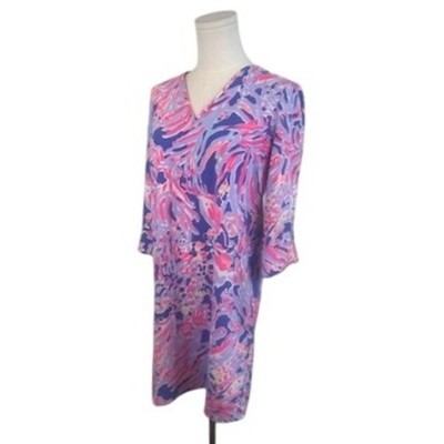 Keywords: Lilly Pulitzer dress, shift dress, v-neck dress, 3/4 sleeve dress, printed dress, colorful dress, resort wear, preppy style, casual dress, womens dress, size XS, polyester dress, summer dress, spring dress