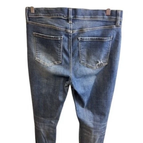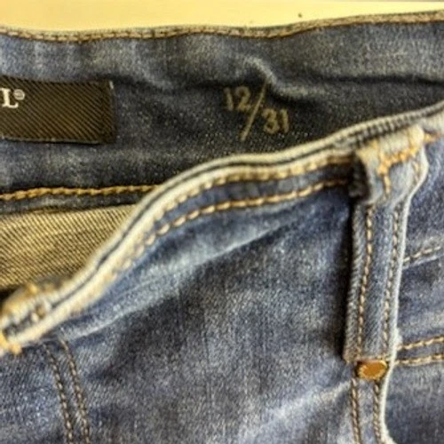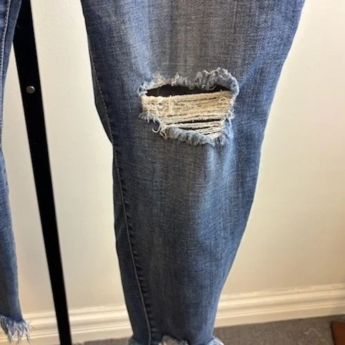 Style: Ankle Department: Women Fabric Wash: Medium Waist Size: 31 in Type: Jeans Accents: Fringe, Button, Logo Features: Distressed, Pockets Fit: Slim Pattern: Solid Rise: Mid (8.5-10.5 in) Fabric Type: Denim Inseam: 27.5 in Material: Cotton, Polyester, Spandex Closure: Button, Zip