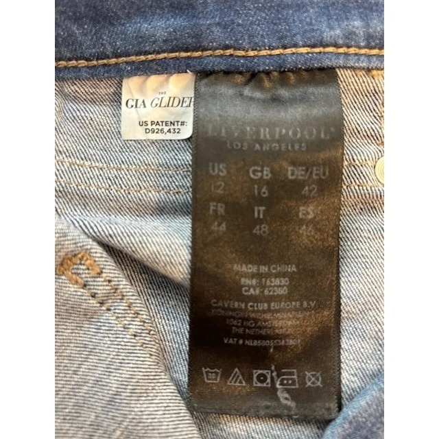 Liverpool Gia Glider The Ankle Skinny Jeans in a medium wash with distressed details. These jeans offer a flattering fit with a distressed hem and a stylish ripped detail on one leg. Perfect for a casual day out or a relaxed evening.