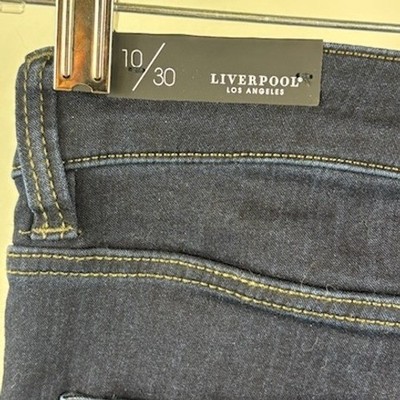 Keywords: Liverpool Jeans, High Rise Jeans, Ankle Jeans, Skinny Jeans, Women's Jeans, Dark Wash Jeans, Size 10 Jeans, Size 30 Jeans, Designer Jeans, Fashion Jeans, Casual Jeans, Distressed Jeans, Everyday Jeans