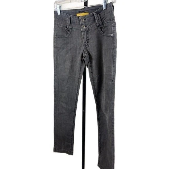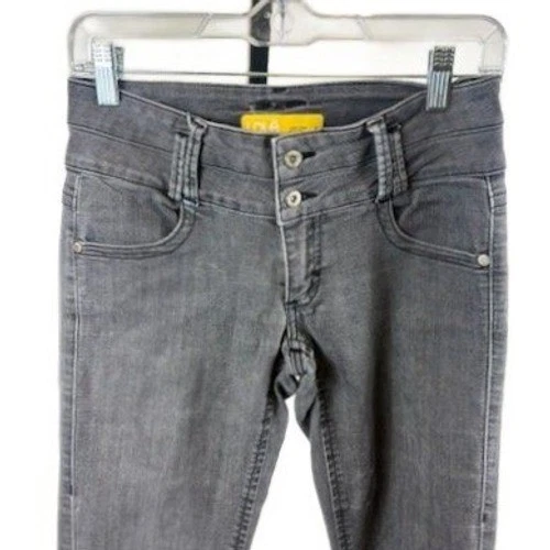 These Lole high rise skinny jeans in a versatile gray wash are women’s. The inseam measurement is 29″ and length from top to bottom is 37.5 inches. These jeans feature a comfortable stretch denim construction designed for a flattering fit. The double button closure and detailed back pockets add a stylish touch. Perfect for everyday wear or a casual outing.