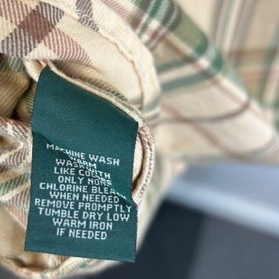 Excellent condition! A classic LRL Ralph Lauren Jeans Co plaid flannel button-down shirt. This shirt features a timeless plaid pattern in shades of beige green and brown. It includes two chest pockets with button closures and a standard collar. Crafted from comfortable material ideal for layering. Perfect for casual outings weekend adventures or layering for a cozy fall look.