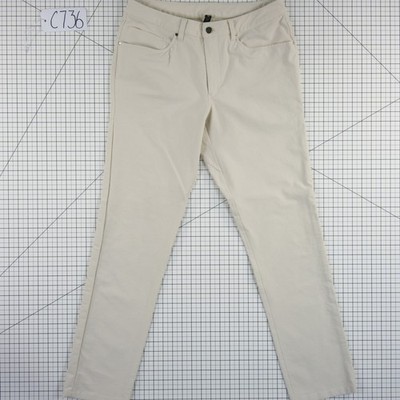 Lululemon Lab pants offer a sophisticated blend of technical performance and everyday style. Crafted from a durable yet stretchy tri-blend fabric, these trousers feature a classic five-pocket design with a modern, slim-tapered silhouette. The off-white bone colorway provides a clean, versatile look suitable for commuting, travel, or casual office wear. Articulated knees and a gusseted crotch ensure maximum mobility, while the moisture-wicking properties keep you comfortable throughout the day.
