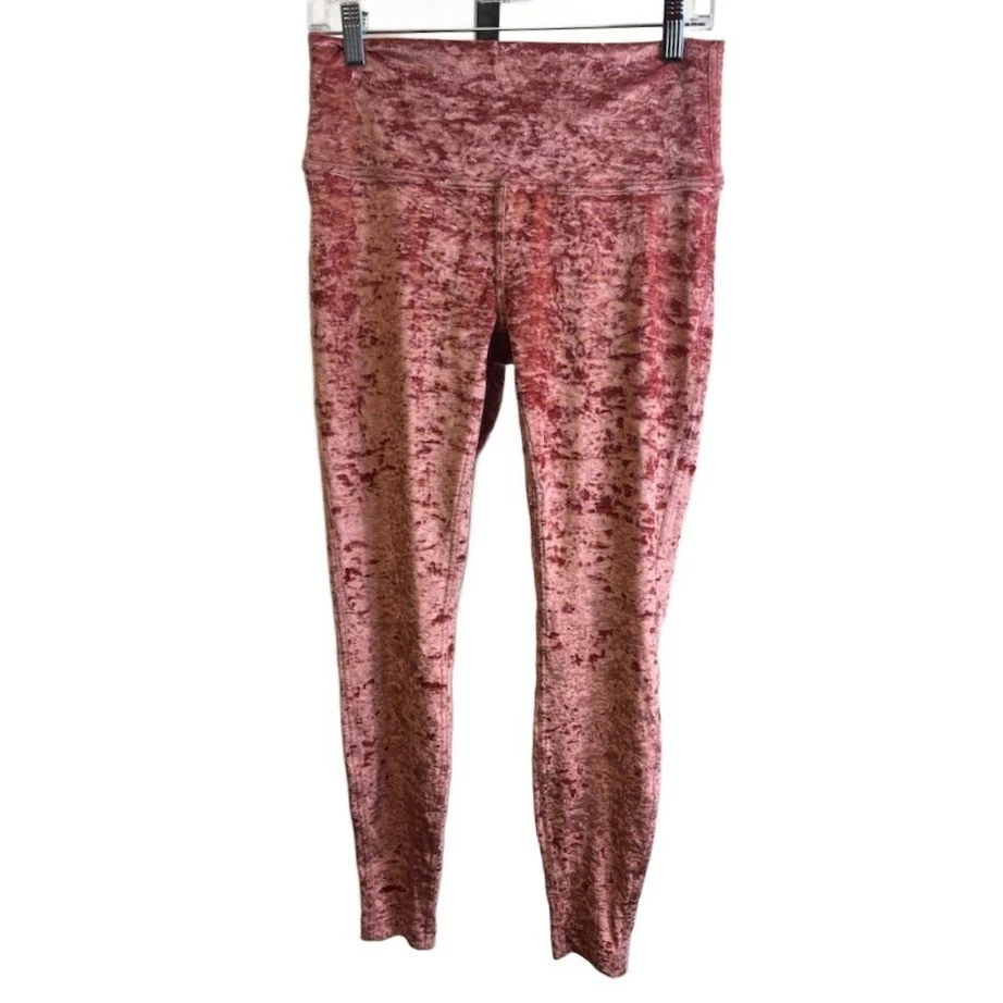 Excellent condition, like new! Lululemon Align leggings in a crushed velvet texture and pink hue in full length and an inseam of 27 inches. Designed for comfort and movement, these leggings offer a smooth feel and a flattering high-rise waist. Ideal for yoga, lounging, or casual everyday wear.