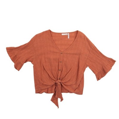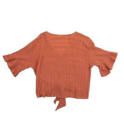 Keywords: Bohemian, Summer, Coastal, Cottagecore, Gauze, Breathable, Rust, Terracotta, Festival, Casual, Cropped, Airy, Shabby Chic, Minimalist, Earthy