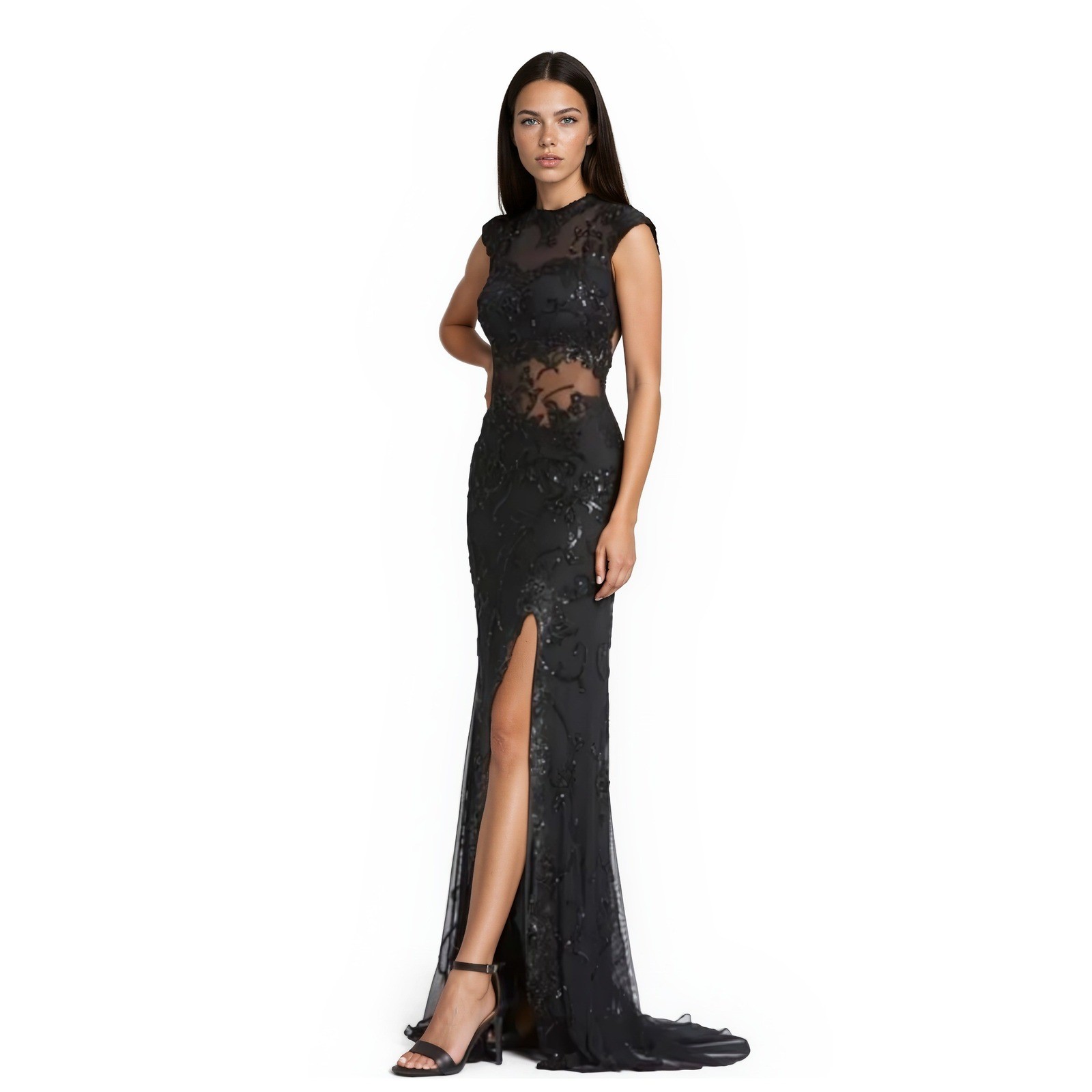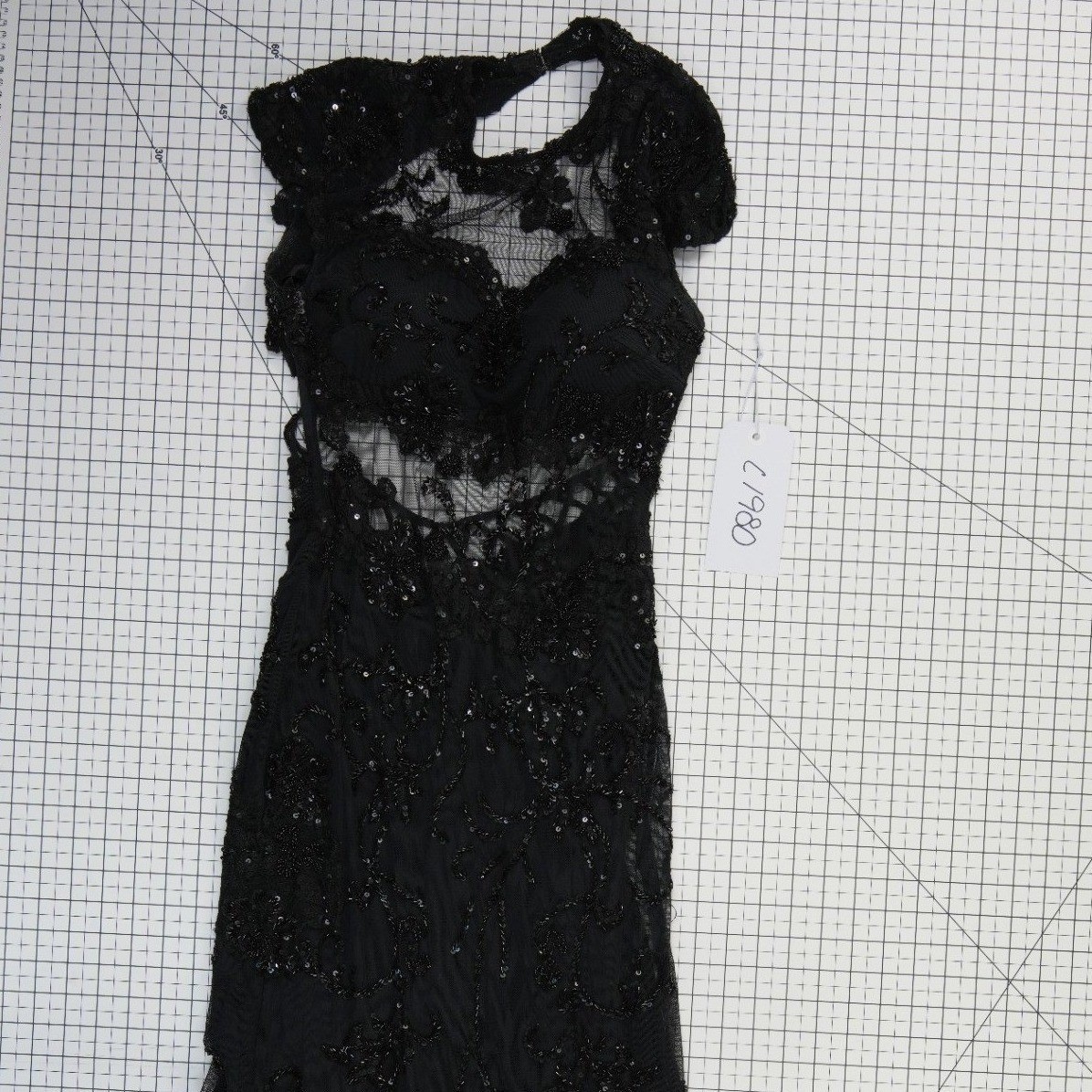 Keywords: Gothic Glamour, Whimsigoth, Black Tie, Luxury, Sparkly, Sheer, Romantic, Dark Feminine, Vintage Inspired, Hollywood Regency, Couture, Statement DressE