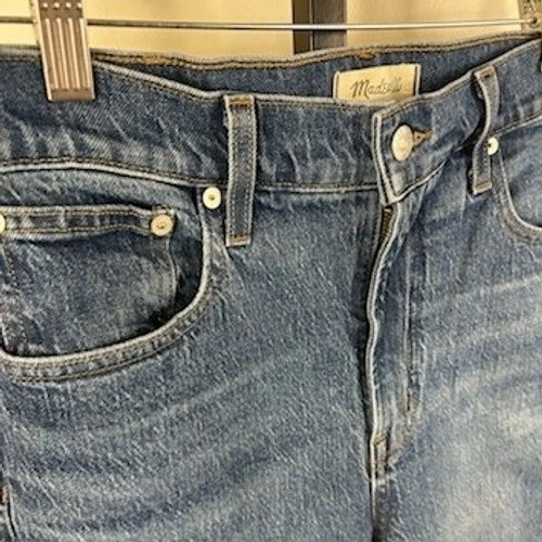 Keywords: Madewell jeans, vintage jeans, high rise denim, raw hem, straight leg, classic denim, everyday wear, weekend style, casual, blue jeans, button fly, five pocket style