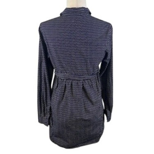 Keywords: Maeve, Tunic top, Navy blue blouse, Beige dot print, Long sleeve top, Womens blouse, Small top, Collared blouse, Casual top, Button down blouse, Empire waist, Boho top, Bohemian, Work wear, Everyday top