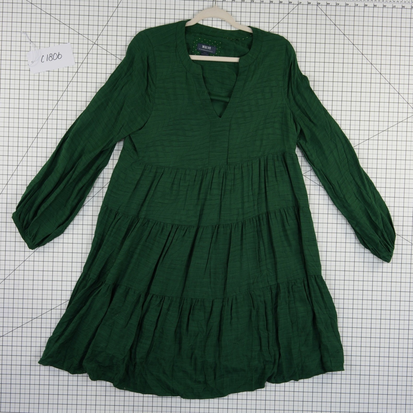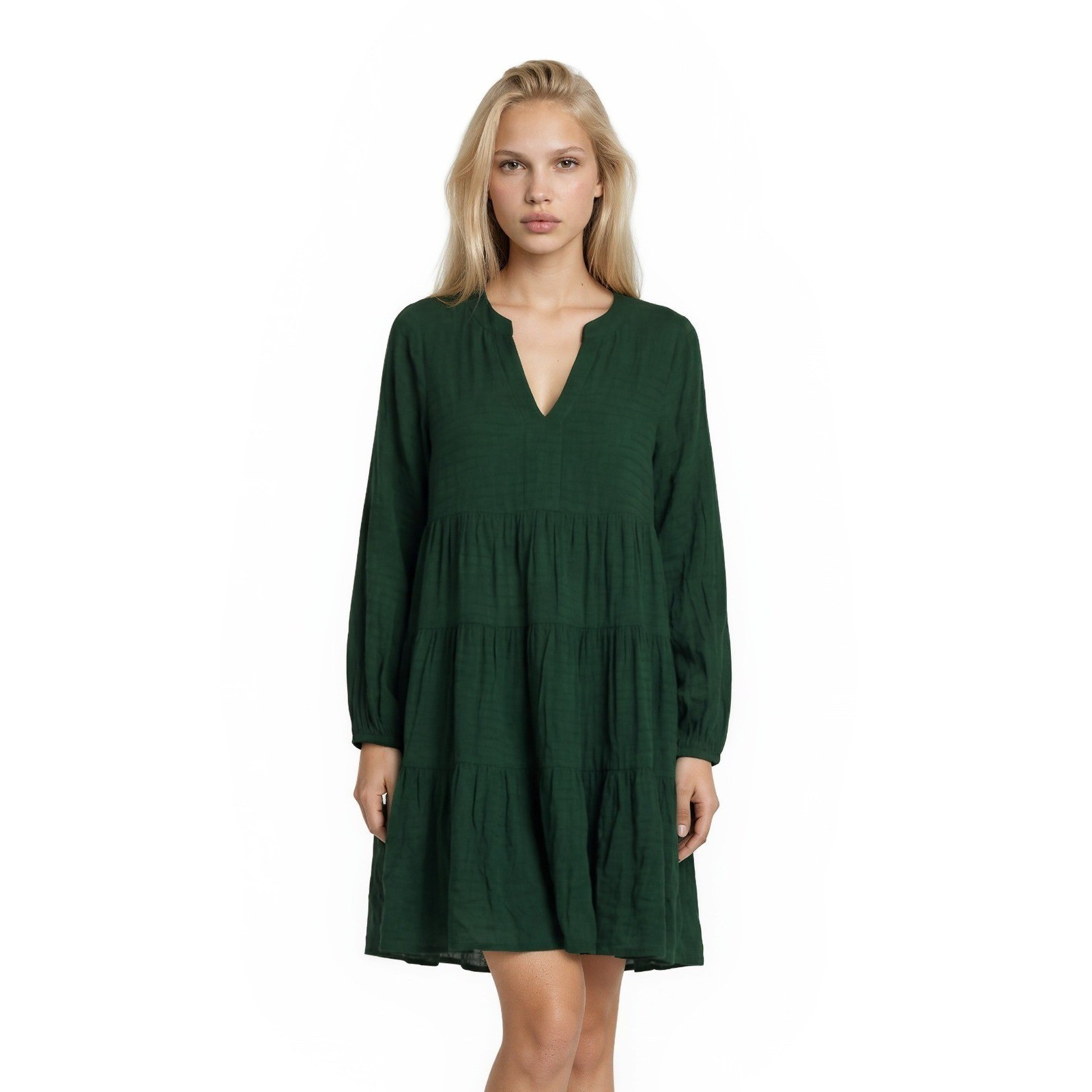 Keywords: Cottagecore, Boho Chic, Emerald Green, Tiered Dress, Anthropologie Style, Fall Fashion, Relaxed Fit, Textured Fabric, Peasant Style, Flowy Dress
