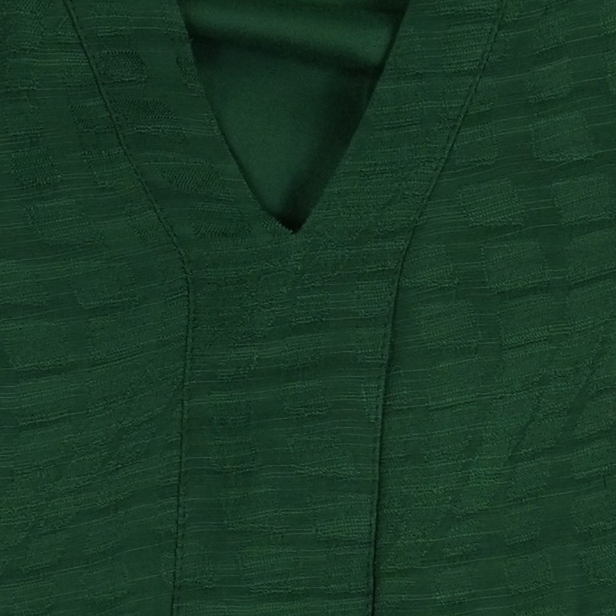 Excellent Condition! Deep emerald green mini dress features a tiered babydoll silhouette with a textured, jacquard-like stripe pattern throughout the lightweight viscose fabric. Designed with a split V-neckline and voluminous long sleeves, this piece offers a relaxed, flowy fit that transitions easily between seasons. The inner yoke is detailed with a charming polka dot lining, adding a hidden touch of whimsy to this versatile staple.