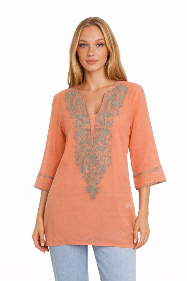 22.5″ in length, 24″ sleeve length. Darts for a flattering fit and a beautiful color! The 5 tortoise shell button closure if a stunning touch.