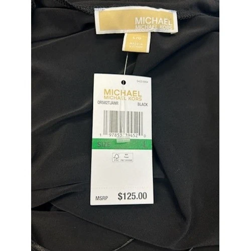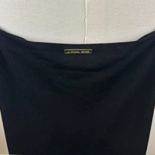 Michael Kors Black Dress Rhinestone Crystal Strap Drape Neck Midi Size Large New