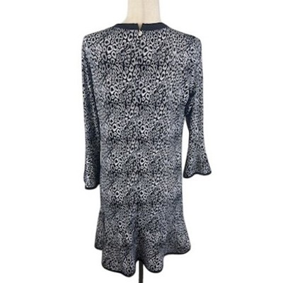 Michael Kors Dress Animal Print Long Sleeve Ruffle Hem Black Silver Size Medium