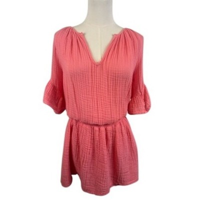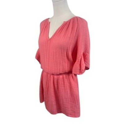 Michael Stars Gauze Tunic Dress V-Neck Bell Sleeve Coral Pink Womens Size Medium