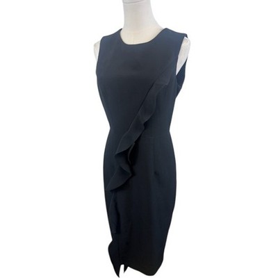 Keywords: Milly dress, black sheath dress, cocktail dress, party dress, sleeveless dress, ruffle dress, career dress, women's dress, size 6 dress, black dress, midi dress, formal dress, evening dress