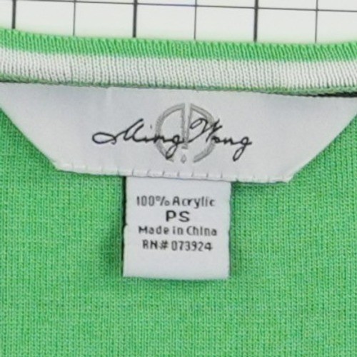 Excellent Condition! Ming Wang knit tank top provides a sophisticated pop of color with its vibrant green hue and contrasting black colorblock hem. Crafted from a fine acrylic knit, this sleeveless piece features a classic scoop neckline accented by a delicate white trim. The structured yet comfortable silhouette makes it an ideal layering piece for professional or polished casual ensembles.