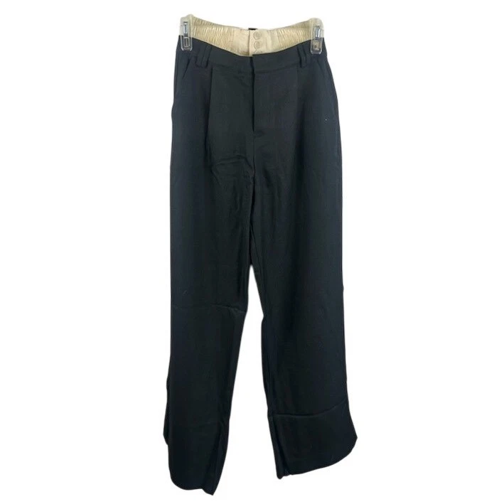Be the first to review “Moon River Black Cream Wide Leg High Waist Pleated Button Pants Size Small”