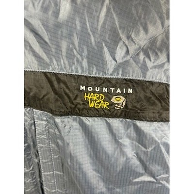 Good condition, one small round faded place or spot on the front (it isn't visible in the pics, it blends with the jacket and is hard to even spot when looking for it in person). Mountain Hardwear windbreaker jacket designed for lightweight protection and versatile wear. Featuring a full zip closure for easy layering and temperature control, this jacket boasts a sleek gray body contrasted with black accents on the sleeves and chest. The design incorporates the Mountain Hardwear logo prominently displayed, adding a touch of brand recognition. Includes a comfortable collar and a durable construction, making it suitable for a range of activities. Ideal for hiking, running, or casual everyday wear during mild weather conditions.