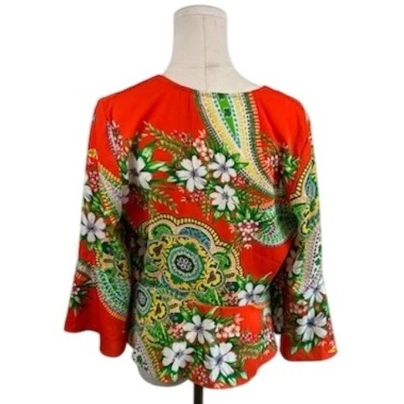 Be the first to review “Mustard Seed Floral Print Tie Front Blouse Bell Sleeve Top Orange Size Medium”